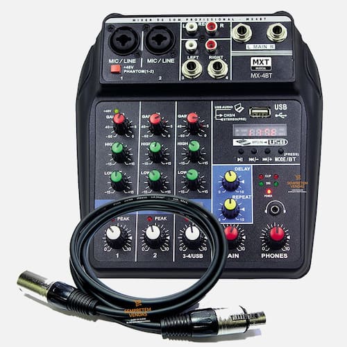 Mesa de Som Profissional 4 Canais com Efeitos MXT MX-4BT Sempretemvendas