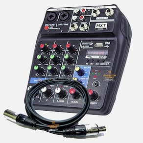 Características:Canais: 4 (3+1)Entradas XLR / P10Entrada Mic Phanton Power 48VSaída estéreo para gravaçãoEqualizador de 2 bandas para cada canal de entradaEfeito fx - Reverberador profissional (2 canais)Monitoração fone de ouvidoConexão MP3 / Pendrive UsbInterface para PcDisplay - mostra a operação e status de reproduçãoAlimentação via Usb Pc / Fonte 5v