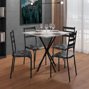 Acompanha 4 cadeiras confortáveis com assento acolchoado e revestimento sintético fácil de limpar.