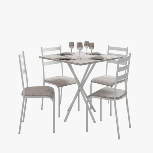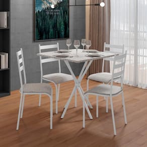 Acompanha 4 cadeiras confortáveis com assento acolchoado e revestimento sintético fácil de limpar.