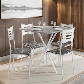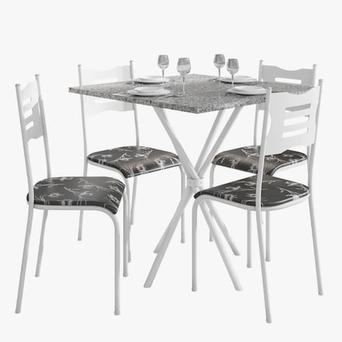 Acompanha 4 cadeiras confortáveis com assento acolchoado e revestimento sintético fácil de limpar.