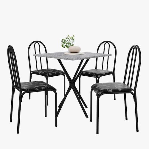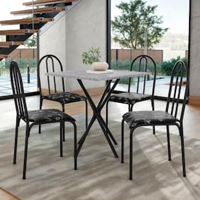Acompanha 4 cadeiras confortáveis com assento acolchoado e revestimento sintético fácil de limpar.