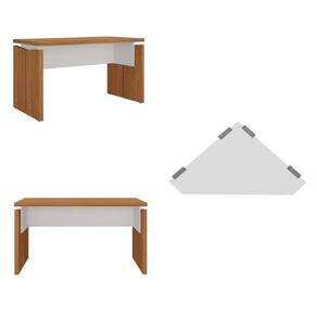 Transforme seu escritório com este Conjunto de Mesa em L. Composto por duas mesas de 1250 mm e uma conexão central, este conjunto se une para criar um móvel único e funcional, perfeito para otimizar seu espaço de trabalho.