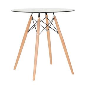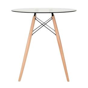 Cadeira Eames DSW: Material do assento: Polipropileno - Material da base: Madeira e aço - Altura do encosto: 81 cm - Altura do assento: 43 cm - Largura do assento: 46 cm - Profundidade do assento: 40 cm - Distância entre os pés: 40 cm - Peso suportado: 130 kg. Mesa Eames: Material do tampo: Vidro temperado 8 mm - Material da base: Madeira e aço - Altura: 75 cm - Diâmetro do tampo: 70 cm - Garantia: 3 meses.