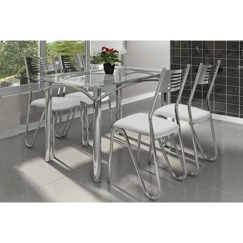 Sala de Jantar Completa Elba c/ Tampo Vidro 140cm + 4 Cadeiras Nápoles Cromado/Branco - Kappesberg Abaixo segue os produtos do KIT: Sala de Jantar Completa Elba c/ Tampo Vidro 140cm + 4 Cadeiras Nápoles Cromado/Branco - Kappesberg Tampo Mesa Sala de Jantar Vidro TAV1461 140x80cm Incolor - Kappesberg