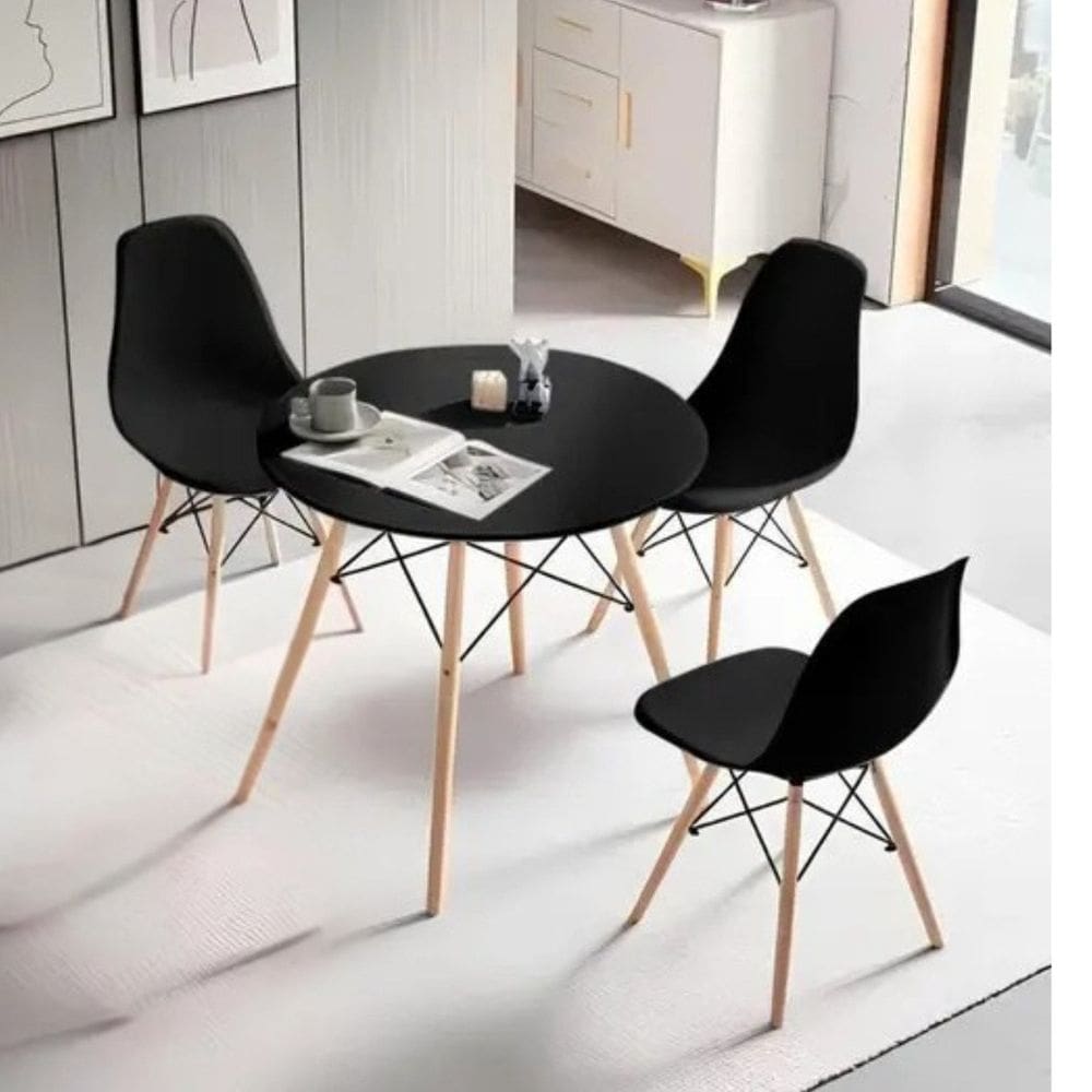 kit mesa jantar eiffel 80cm preta 03 cadeiras leda amarela magazine decor
