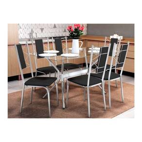 Conjunto: Mesa Sala Jantar Loire C/ Tampo Vidro 150cm + 6 Cadeiras Lisboa Cromado/courano Preto - Kappesberg