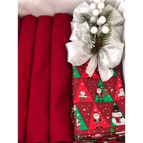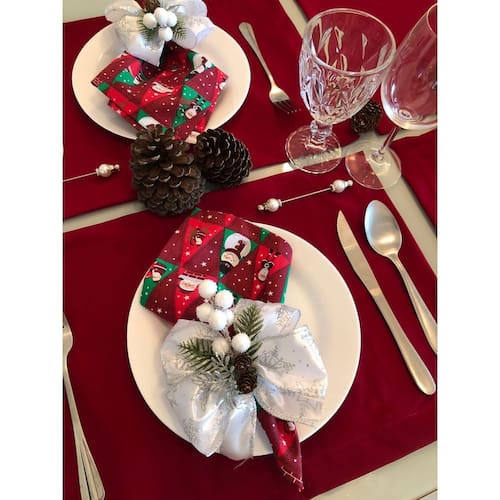 Kit Mesa Posta 08Lugares Jogo Americano +Porta Guardanapo Estampas.: Jogo Americano Vermelho + Guardanapo Papai Noel Vermelho +Porta Guardanapo Prata Kit Mesa Posta