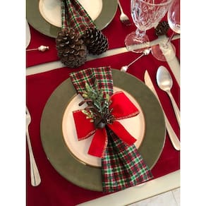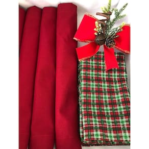 Kit Mesa Posta 12 Lugares Jogo Americano + Guardanapo Decora Estampas.: Jogo Americano Vermelho + Guardanapo Xadrez +Porta Guardanapo Vermelho Sino Kit Mesa Posta
