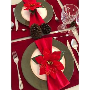 Kit Mesa Posta Jogo Americano 04Lugares Natal Reveillon Deco Estampas.: Jogo Americano Vermelho + Guardanapo Papai Noel Vermelho +Porta Guardanapo Prata Kit Mesa Posta