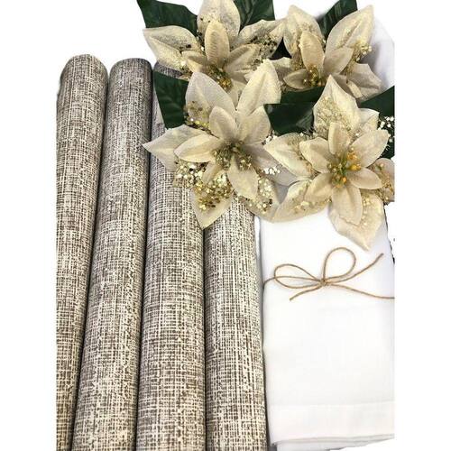 Kit Mesa Posta Jogo Americano Completo Decor Natal 6 Lugares Modelos: Jogo Americano Off + Guardanapo Árvore Verde + Porta Guardanapo Bico De Papagaio Dourado Kit Mesa Posta O nosso Kit Mesa Posta possui um design elegante e charmoso com cores neutras e delicadas que dão um toque especial na mesa. Eles são versátil e combina com diversos tipos de ocasiões e compondo diferentes tipos de mesa. Devolvido em tecido, acabamento bordado. Complete o visual da sua mesa.Esse lindo kit alia perfeitamente qualidade e beleza. - Fácil higienização;- Prático e Versátil;- Elegante e Moderno; Itens Inclusos:- 06 JOGO AMERICANO DE 48cm x 38cm - Tecido Acquablock- 06 Guardanapos 45cm x 45cm - Tecido Tricoline - 06 Porta Guardanapo. Composição/material Jogo Americano - 72% algodão e 28% poliésterComposição/material Guardanapo - 100% algodão e estampa digital.Composição Material Porta Guardanapo - Tecido sintetico e argola de madeira. Marca: Marphi Comercial Marca: Marphi Comercial