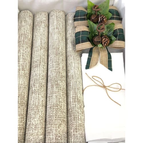 Kit Mesa Posta Jogo Americano Completo Decor Natal 6 Lugares Modelos: Jogo Americano Off + Guardanapo Branco Liso + Porta Guardanapo Rústico Verde Kit Mesa Posta