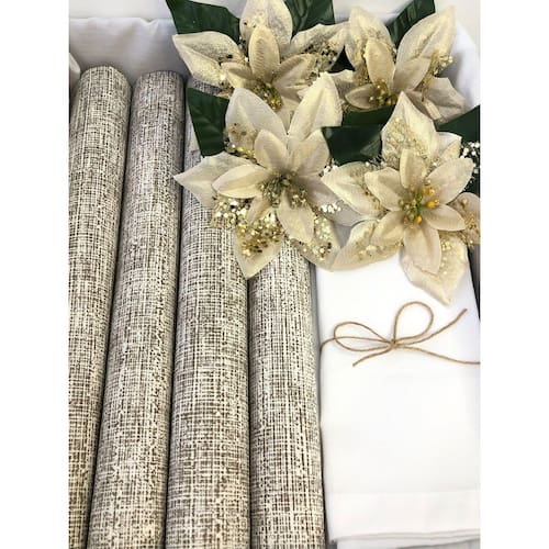 Kit Mesa Posta Jogo Americano Completo Decor Natal 4 Lugares Opções: BrancoLisoBicoPaDourado Kit Mesa Posta