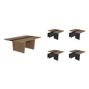 Kit Mesa de Reunião P/escritório com 4 Módulos P/extensão Caixa de Tomada e Tampo em Tamburato 50mm