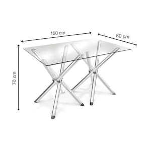 Sala de Jantar Completa Volga c/ Tampo Vidro 150cm + 6 Cadeiras Nápoles Cromado/Courano Branco - Kappesberg Abaixo segue os produtos do KIT: Sala de Jantar Completa Volga c/ Tampo Vidro 150cm + 6 Cadeiras Nápoles Cromado/Courano Branco - Kappesberg Tampo Mesa Sala de Jantar Vidro TAV1581 Vidro 150x80cm Incolor - Kappesberg