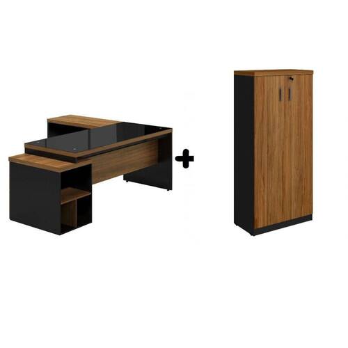 O Kit Mesa Web40 possui tampo de 40mm de espessura (engrossado) medindo 1,70 x 0,70, contendo gaveteiro Pedestal com 02 Gavetas e Gavetão para Pasta Suspensa, corrediças Metálicas, fechadura na primeira gaveta (Medida final da mesa com o gaveteiro: 1,92m). Mesa auxilar de 0,90x0,45, totalizando 1,60m de Largura, Tampo de 40mm de espessura (engrossado) e acabamento em fita PVC. Fabricada em MDP com Revestimento Melamínico (BP) de alta resistência. Possui Sapatas Niveladoras de altura. Altura da Mesa: 0,735m. Poderá escolher o lado do gaveteiro e da Mesa auxiliar no momento da montagem. Vidro Preto Temperado de 4mm (para o tampo da mesa de 1,70m). Armário Alto Fechado 0,80 x 0,45 x 1,61 com 2 Portas. Espessura do Tampo com 40mm. Fabricado em MDP com Revestimento Melamínico (BP) de alta resistência.