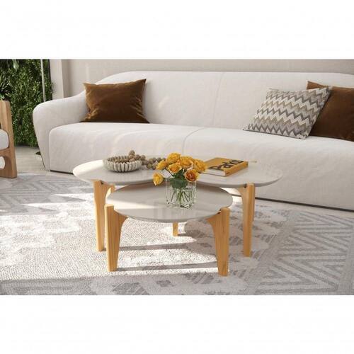 A Mesa Lateral Florida com acabamento Off White Perolizado e Freijó traz sofisticação e modernidade para seu ambiente, sendo ideal para complementar a decoração.