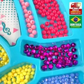 Com este kit, as crianças poderão montar suas próprias pulseiras, colares e braceletes, combinando miçangas de diversas cores e modelos diferentes. É perfeito para brincar de "faça você mesmo" e desenvolver habilidades artísticas e de coordenação motora de forma divertida e segura.
