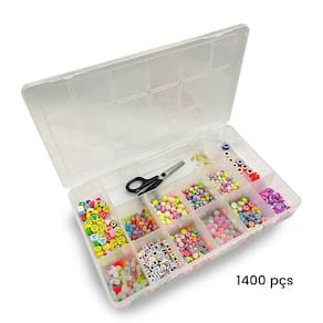 Criamos esse kit com aproximadamente 1400pçs, utilizando produtos que as crianças realmente gostam, peças que estão na moda, com cores vivas e acabamento perfeito. Esse kit estimula a Criatividade o empreendedorismo, trabalha a coordenação motora a concentração entre outros benefícios. Crie e Personalizar Colar, Chaveiros, Prendedores de Chupetas, Tênis, Bolsas, Decore Materiais Escolares, Lembrancinhas, Acessórios para Pets, artesanato em geral. Kit composto Por: 10gr. De entremeio de Frutinhas 10mm Aprox. 20uni. 1 Cordão de fio de Fimo com 400pçs. 1 Rolo de Fio de Silicone elástico com 10mts. 10gr de entremeio Florzinha aprox. 20 unidades. 10gr de entremeio Emoji variado aprox. 20uni. 15gr de alfabeto entremeio redondo branco letra preta aprox. 100un. 14gr de alfabeto entremeio redondo colorida letra branca aprox. 100un. 7gr de Vogal entremeio redondo letra branca aprox. 50un. 10 entremeios emborrachado de entremeio olho grego. 6 Pingentes de urso translucido 10gr de entremeio smile translucido redondo 0,7mm aprox. 70un. 20gr de Bola leitosa colorida passante 08mm aprox. 90un. 15gr de alfabeto entremeio quadrado branco letra preta aprox. 100un. 7gr de vogal entremeio quadrado branco letra preta aprox. 50un. 13gr de entremeio coração colorido letra branca aprox. 100un. 5gr Estrela infantil passante 5x13mm aprox. 15un. Entremeio de Borboleta 18mm aprox. 15un. 20gr Bola Fosca com miolo neon 10mm aprox. 35pcs 16gr de Entremeio Redondo Smile Acrílico aprox. 50un. 20gr Bola Plástica Leitosa colorida 06mm aprox. 200un. 1 Tesoura sem ponta 1 Box organizador com 13 divisoras, tampa e trava plástica. Marca: ADB