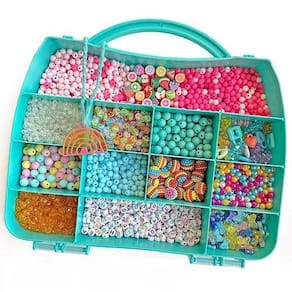 O kit inclui: - miçanga bola rosa 6mm - 30 gr - aprox. 280 pçs - miçanga bola azul 6mm - 30 gr - aprox. 280 pçs - miçanga bola pink 6mm - 30 gr - aprox. 280 pçs - miçanga bola verde água 8mm - 30 gr - aprox. 105 pçs - miçanga bola colorida candy color 8mm - 30 gr - aprox. 105 pçs - pérolas abs mix de cores 6mm - 30 gr - aprox. 275 pçs - miçanga sextavada laranja 6mm - 30 gr - aprox. 270 pçs - miçanga translúcida irisada 5mm - 30 gr - aprox. 280 pçs - miçanga smile 6mm - 20 gr - aprox. 145 pçs - miçanga borboletas - 30gr - aprox. 125 pçs - mix de pingentes com ursinhos gummy bear - 15 pçs - miçanga letras - alfabeto completo 35gr + só vogais 5gr - aprox. 350 pçs - miçanga frutinha mix emborrachada - 20 pçs - miçanga craquelada colorida 12 mm - 20 gr - aprox. 30 pçs - maleta organizadora 12 divisórias - 1 pç - pingente exclusivo da marca