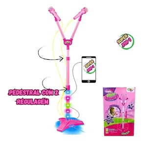 O Kit Microfone Infantil Duplo com Pedestal é o brinquedo perfeito para transformar qualquer momento em um verdadeiro show. Com sons divertidos e conexão direta ao , as crianças podem cantar suas músicas favoritas e se sentir como verdadeiras estrelas do karaokê.