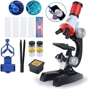 - Microscópio C2121 (ampliação de 100X, 400X e 1200X) com LED para alunos iniciantes, inclui conjunto de acessórios variados amo ciência e biologia!