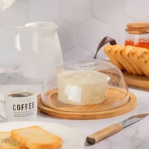 Kit Migalheira Queijeira Boleira para Mesa Posta de Café Bambu Acrílico Madeira com Tampa.