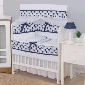 Kit Mini Berço Algodão 8 Pcs Bebê Menino Bandeirola Marinho