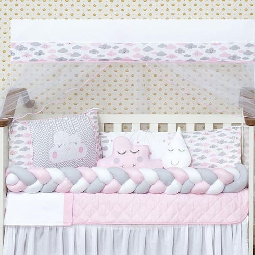 Kit mini berco 10 peçasServe para berço com colchão de até 90cm x 50cm (mini berço)1 - edredon -------1,30cm x 0,70cm1 - lencol cima ----1,30cm x 0,70cm1 - fronha ---------0,33cm x 0,22cm1 - mosquiteiro---- 4,50m x 1,50m1 - bando de mosquiteiro-- 0,90cm x 0,18cm1 - cabeceira ---------------0,45cm x 0,26cm1 - protetor lateral------- 0,88cm x 0,20cm1 - trança------------------ 0,88cm x 0,20cm1 - almofada gotinha ------0,25cm x 0,15cm1 - almofada nuvem rosa carinha--- 0,35cm x 0,20cmDescrição das pecas :Tecido estampado: 100% algodãoTecido liso: 100% poliésterEnchimento 100% poliésterMosqueteiro 100% poliamidaInformações importantes:O produto já vai pronto para o uso, com o enchimento já incluso.Acompanha as peças conforme a descrição, não esta incluso o berçoA cabeceira e as laterais do kit possuem zíper para retirar o enchimento, facilitando assim uma possível lavagem do produto.