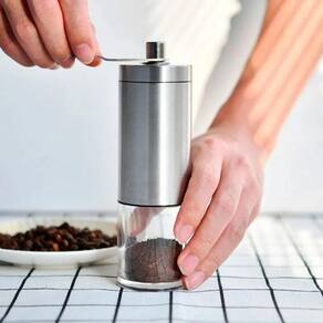Moedor de Café Manual: DIMENSÕES: A-18cm x D-5cm COMPOSIÇÃO: Aço Inox e Acrílico Marca: Kadê