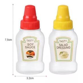 Kit Mini Garrafinhas Bisnaga de Molhos Mostarda e Ketchup Kit composto por: 01 Mini bisnaga Salad Dressing Molho de salada 01 Mini Bisnaga Soy Sauce Molho de soja - Shoyu Ou Mostarda e Ketchup por conta das cores das tampinhas, removendo os adesivos. Material: Plástico Dimensões: L: 3,2cm x A: 7,5 Este kit encantador é composto por duas bisnagas lindas e delicadas. Podem ser utilizadas em diversas ocasiões: Lancheiras infantis, Molhos para salada para levar ao trabalho, Bisnaga de mostarda e ketchup em piqueniques, Lanches divertidos para as crianças e muitas possibilidades. Podem ser utilizados para: Mostarda, Ketchup, Maionese, Temperos para saladas, , Kero, Leite condensado, Caldas de frutas, etc. Para lancheiras saudáveis é uma excelente opção As crianças poderão se alimentar de uma forma nutritiva e muito divertida Agora é só deixar a imaginação fluir e tornar os momentos muito mais alegres e saborosos