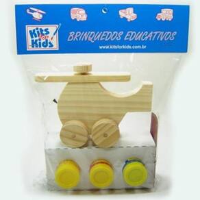 Kit Mini Helicóptero - Kits for Kids Composto por 1 helicóptero pequeno de madeira Pinus, 1 pincel, 1 lixa, 3 tintas guaches não-tóxicas. Divirta-se a valer pintando da forma que quiser um lindo helicóptero de madeira, depois brinque com a sua imaginação, e transforme-o em um incrível brinquedo de coleção. Desenvolve a coordenação psicomotora, criatividade, concentração e discriminação de cores. Idade: a partir de 4 anos. Medidas do produto: C x A x L 12 x 9 x 2 cm. INMETRO CE-BRI/INNAC 00811-001 NM 300/2002 Marca: Não Informado
