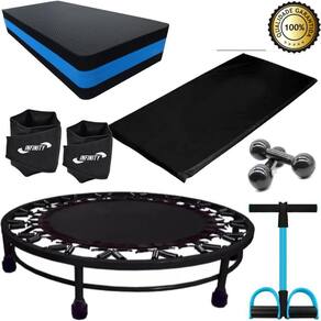 Kit mini jump+colchonete+halter2kg+extensor+step+caneleira4k Detalhes do produto Mini jump profissional 32 molas com aro de reforço - cheers O jump profissional - cama elástica trampolim é ideal para o uso em academias, condomínios e residências, além de queimar calorias de forma eficiente. Confeccionado em tubo redondo de aço com aro de reforço, possui pintura em epóxi e tem os pé fixos . São 32 molas para você manter o corpo em forma de uma maneira divertida e saudável. As molas são fixadas á tela por 16 suportes de aço. Pés em pvc antiderrapantes removíveis que se encaixam. O colchonete profissional 100 x 60 x 3 cm é ideal para ter mais conforto na hora de fazer seus exercícios, praticar yoga, pilates ou qualquer exercício funcional. Ele é super prático, fácil de guardar, e é fabricado em espuma de 30 mm com densidade d23, sendo confortável na medida certa. No exterior, é revestido em napa lavável e impermeável, o que facilita quando houver necessidade de higienização e no excesso de suor na prática de exercícios. Você vai se sentir mais confortável para fazer abdominais e outras atividades físicas, além de seu uso ser indispensável para proteger a coluna e evitar lesões. Ações e benefícios: - confortável com enchimento em espuma 30mm de densidade d23 - leve e prático para transporte e armazenamento - tecido lavável e impermeável garante durabilidade do produto - ideal para quaisquer exercícios, prática de yoga, pilates e outras atividades Indicações: - prevenir a coluna e o corpo de lesões em exercícios no solo - ideal para ter mais conforto na prática de quaisquer atividades esportivas Dados técnicos: Tamanho: 100 x 60 x 3 cm Marca: fitness store Material: revestimento em napa com enchimento em espuma 30mm de densidade d23 : 3 meses contra defeito de fabricação Cor: preto Indicações Ideal para o uso em academias, condomínios e residências. Indicado para . Kit composto por: 1- mini jump 1- colchonete 100x60x3 cm 1- par de halter emborrachado 2 kg 1- extensor elástico com apoio 1- step de eva 60cm x 30cm x 10cm 1- caneleira 4 kg - par Marca: Não Informado