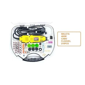Kit Mini Retifica 220v Descrição: Ideal para trabalhos em madeira, metal, cerâmica, vidro e plástico. Seu tamanho e corpo ergonômico tornam possível um fácil manuseio em lugares de difícil acesso.