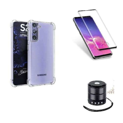 Kit Mini Som Bluetooth Samsung S21 + Capa Anti Impacto + Película Vidro 3D