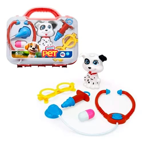 Apresentamos a Maleta Pet da Pakitoys. Cada maleta vem com um pet adorável e acessórios para cuidar dele. Ensine seu pequeno a responsabilidade e o amor pelos animais de uma forma divertida e educativa. Ideal para desenvolver empatia e carinho desde cedo. Informações: • Produto: Maleta Pet • Marca: Pakitoys, • Tipo: Maleta de Veterinario • Categoria: Faz de Conta • Tamanho (C x A x L): 24,5 x 21,5 x 7,0 • Conteúdo: - 1 Maleta - 1 Óculos - 1 Pílulas - 1 Seringa - 1 Estetoscópio - 1 Mini Dalmata • Recomendação: Para crianças a partir de 3 anos de idade. Especificações: • Referência: PAK1577 • Código de Barras: 7898676721410 • Embalagem (C): 24,5 • Embalagem (Peso): 0,298 • Material / Composição: Plástico • Registro: 001342/2022 • Certificado: Órgãos Autorizados - OCP´S (Organismos de Certificação de Produtos) BENEFÍCIOS DE BRINCAR: •Eleva a autoestima •Exercita a memória •Estimula o raciocínio •Exercita o imaginário •Desenvolve a criatividade •Desenvolve percepção visual •Desperta a atenção e curiosidade •Desenvolvimento neuropsicológico •Estimula habilidades motoras básicas •Incentiva a comunicação e linguagem •Desenvolve aspectos emocionais e afetivo • Estimula o reconhecimento de formas e cores Aviso: • As imagens são meramente ilustrativas • Os pesos, tamanhos e medidas são aproximados • As cores e estampas dos produtos podem ter variações • As informações são de responsabilidade do fabricante ou fornecedor