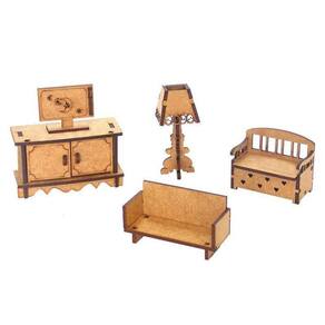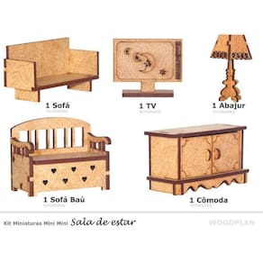 O kit contém: 1 sofá: altura: 3,3 cm; comprimento: 8 cm; largura: 3,2 cm 1 tv: altura: 4 cm; comprimento: 4,8 cm; largura: 1,5 cm 1 abajur: altura: 8,4 cm; comprimento: 3,6 cm; largura: 3,6 cm 1 sofá baú: altura: 5 cm; comprimento: 6,5 cm; largura: 3,7 cm 1 cômoda portas que abrem e fecham : altura: 5,2 cm; comprimento: 9,4 cm; largura: 4 cm