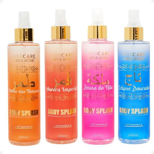 Kit Miss Rôse Body Splash Colônia Árabe: Deusa do Nilo, Aurora Imperial, Néctar de Tâmaras e Eclipse Dourado