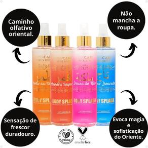 As fragrâncias do kit são inspiradas no luxo e mistério do Oriente, com combinações de notas florais, frutadas e especiadas. Cada uma delas é pensada para criar uma experiência sensorial única e sofisticada.
