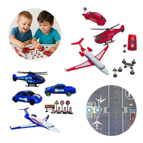 Kit Missão Resgate Carrinho Helicóptero Avião de Brinquedo Kit Missão Resgate Carrinho Helicóptero Avião de Brinquedo ===================================== Com veículos inspirados em missões reais de salvamento e emergência, esse conjunto estimula a imaginação, desenvolve a criatividade e transforma qualquer brincadeira em uma operação emocionante. Com diferentes tipos de veículos, é possível criar várias missões de resgate, como salvamentos em terra, ar e situações de emergência urbana. Desenvolve a coordenação motora, o pensamento criativo e o senso de trabalho em equipe. Cores vibrantes, detalhes marcantes e formato que lembra os veículos reais de salvamento. Ideal para brincar com amigos ou em conjunto com outros brinquedos. ===================================== Contém: 01 Avião 01 Helicóptero 02 Carrinhos 01 Base que Simula um Aeroporto Placas de Sinalização Especificações: - Material: Plástico PP e Adesivo - Medida Avião: 25cm x 03cm - Medida Helicóptero: 23cm x 08cm - Medida Carrinhos: 23cm x 08cm cada - REGISTRO INMETRO: 00362/2018 - Cor enviada de forma aleatória conforme disponibilidade em ATENÇÃO Não indicado para crianças menores de 03 anos por conter peças pequenas que podem ser engolidas ou aspiradas. A embalagem contém fechos metálicos, retirar antes de entregar o brinquedo para a criança ===================================== Devido à diferença entre monitores e iluminação diferentes, pode haver variação na tonalidade apresentada no anúncio. Medidas muito aproximadas. Homologação Inmetro: CE-BRI/IQB 006429 54879/21-006 Ean: 6013400053099