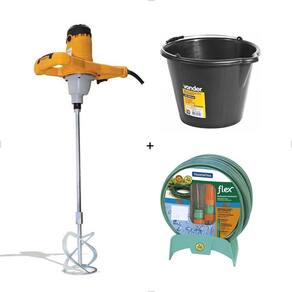Potência: 1200W, proporcionando alta capacidade de mistura. Tensão: 220V, adequado para ser utilizado em redes elétricas de alta voltagem. Aplicação: Ideal para misturar argamassa, tinta, cimento, entre outros materiais, tanto em ambientes de construção civil quanto em serviços gerais. Velocidade: Possui uma velocidade variável que permite ajustar conforme o tipo de material a ser misturado. Ergonomia: O design é pensado para facilitar o manuseio, com um cabo robusto e sistema de segurança. Mangueira 20m: