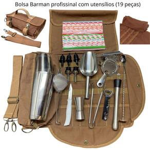Kit composto por 19 peças com Bolsa Couro Luxo Vintage1 sendo: 1 Bolsa em couro luxo Vintage com divisórias e alça tiracolo NilosDecor. ...Barman... Na década de 30, após a crise econômica de 1929 nos EUA, houve um aumento no consumo de álcool pela população, foi então que surgiu a Lei Seca proibindo o comércio de bebidas relacionadas, contudo o consumo não cessou. Daí surgiu o ...Barman... Que por ocasião precisava ser dissimulado, elegante e discreto, além de um raciocínio rápido e criativo. Conta-se que durante uma das frequentes buscas policiais para averiguação dos estabelecimentos, o ...Barman... Antecipando-se à chegada dos oficiais, adicionava uma porção de suco de laranja aos copos de vodka que eram servidos naquela noite, camuflando assim as bebidas. Além de salvar o estabelecimento, o homem do bar também dava origem ao que hoje conhecemos como coquetelaria. Hoje, sem a proibição o ...Barman... Tornou-se um alquimista moderno, continua sendo elegante, discreto e com raciocínio rápido e criativo, além é claro das ...Bargirls... Tão elegantes quanto com Criatividade e raciocínio que acrescentam muito mais charme e elegância no preparo de drinks e coquetéis. Para isso se faz necessário itens que ajude a compor seu trabalho de forma , seja em ambientes como PUBs ou até mesmo em uma confraternização com amigos ou familiares. - Adquira seu kit com 19 peças para Barman com bolsa em couro luxo Vintage1 Vtg 1 . Imagens meramente ilustrativas. ==================================== de 90 dias para defeitos de fabricação ==================================== Marca: Não Informado