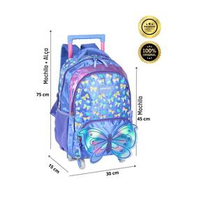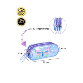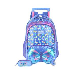 Kit escolar luxo mochila 2em1 rodas costas+ estojo triplo borboleta mochila de rodas e costas: