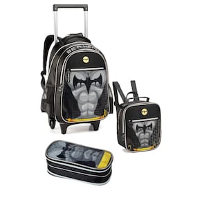 Kit Mochila Carrinho Com Alça Lancheira E Estojo Batman