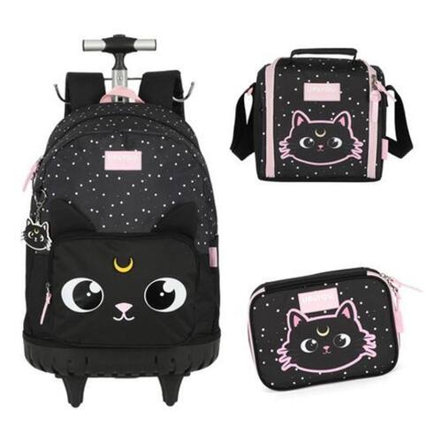 Kit Mochila Carrinho Alça Nas Costas Gatinho Gato Up4You