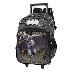 Esse lindo kit escolar do batman vai fazer sucesso entre a garotada. Esse modelo conta com 2 compartimentos e dois bolsos laterais para colocar a garrafa. Possui 2 rodinhas de silicone e 2 apoiadores frontais para mantê-la em pé.