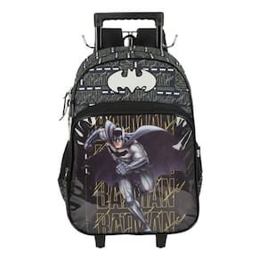 Esse lindo kit escolar do batman vai fazer sucesso entre a garotada. Esse modelo conta com 2 compartimentos e dois bolsos laterais para colocar a garrafa. Possui 2 rodinhas de silicone e 2 apoiadores frontais para mantê-la em pé.