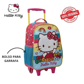 Kit Mochila Carrinho E Rodas Lancheira E Estojo Hello Kitty