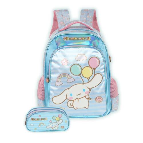 Kit Mochila Cinnamoroll Costas E Estojo Triplo Escolar Kids