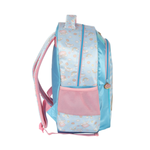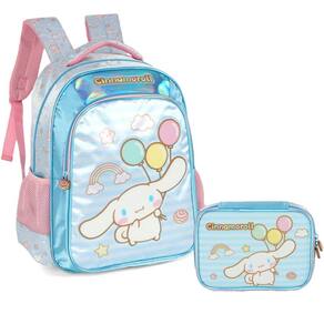Design encantador: estampa do Cinnamoroll com balões coloridos e detalhes holográficos que dão brilho especial. Compartimento principal amplo: ideal para cadernos, livros e pastas. Bolso frontal funcional: perfeito para pequenos objetos e acessórios. Bolsos laterais em tela: práticos para garrafinhas e itens de uso rápido. Alças acolchoadas e ajustáveis: conforto e ergonomia para carregar todos os dias. Material durável e resistente: ideal para acompanhar a rotina escolar.